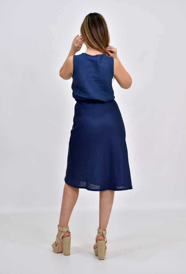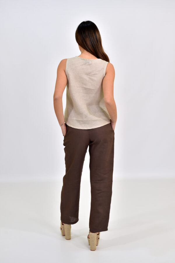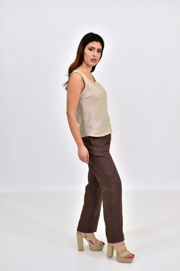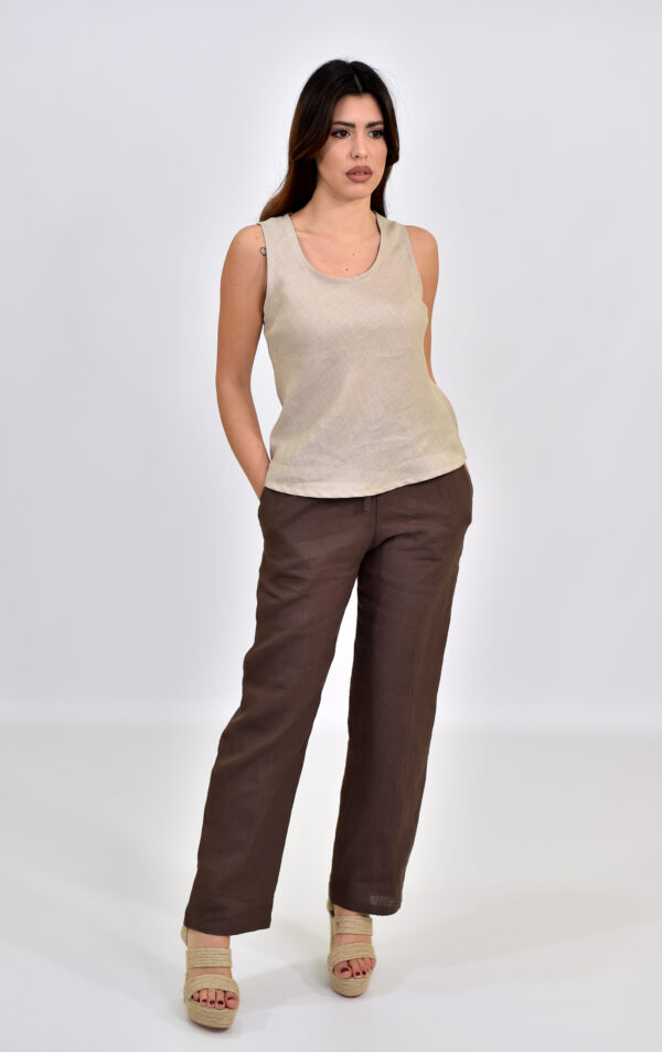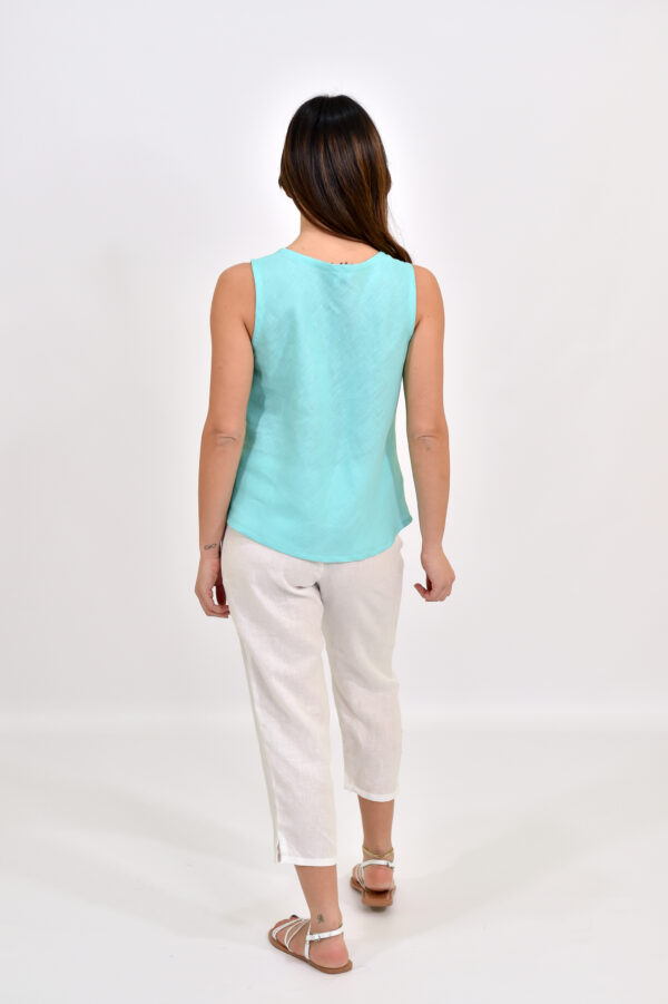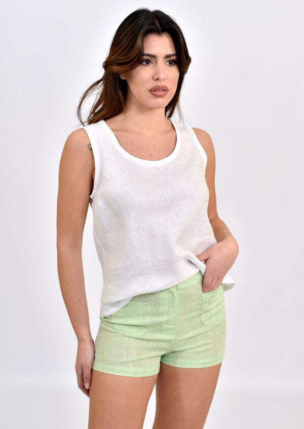 Canotta con spalla larga e riprese seno. Taglio a sbieco.